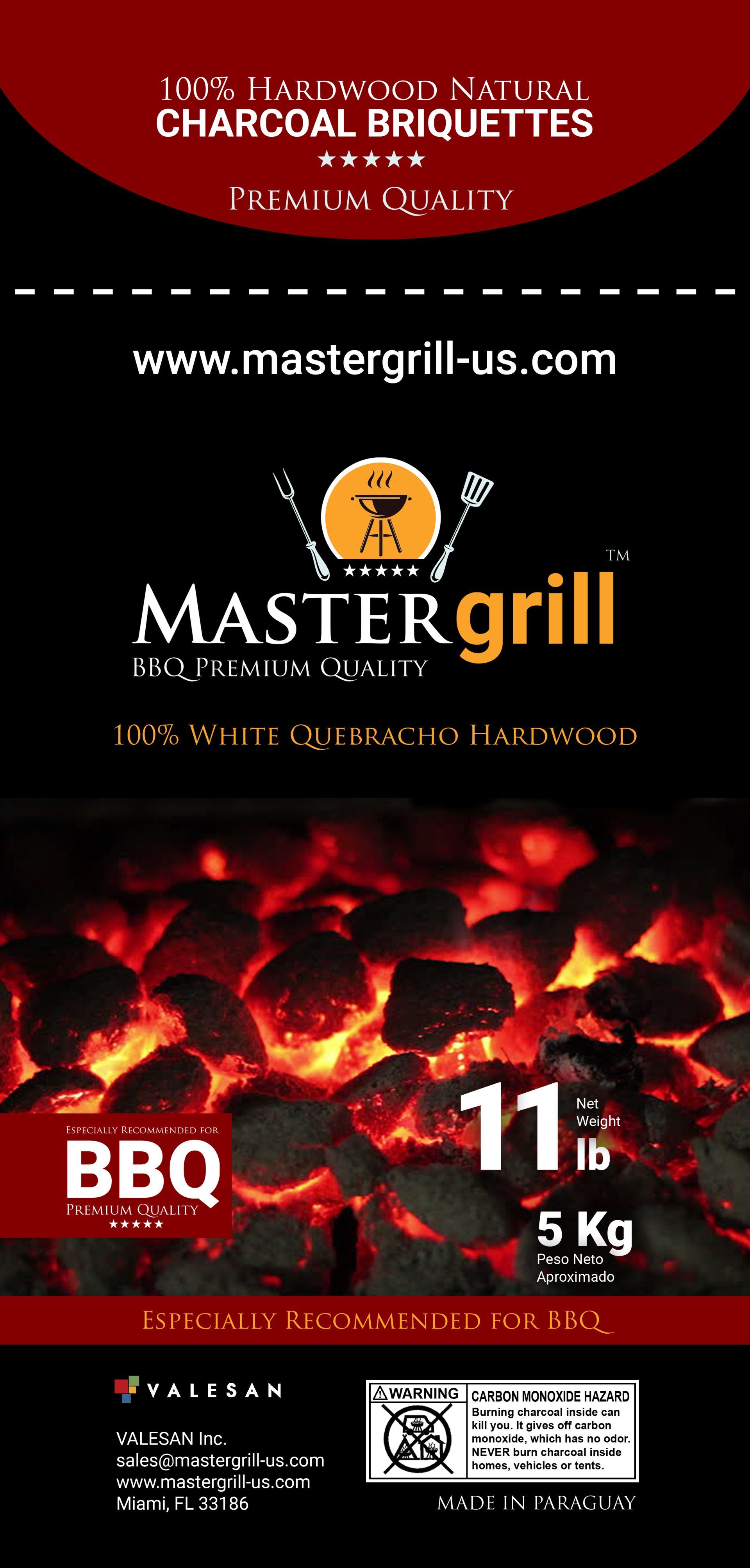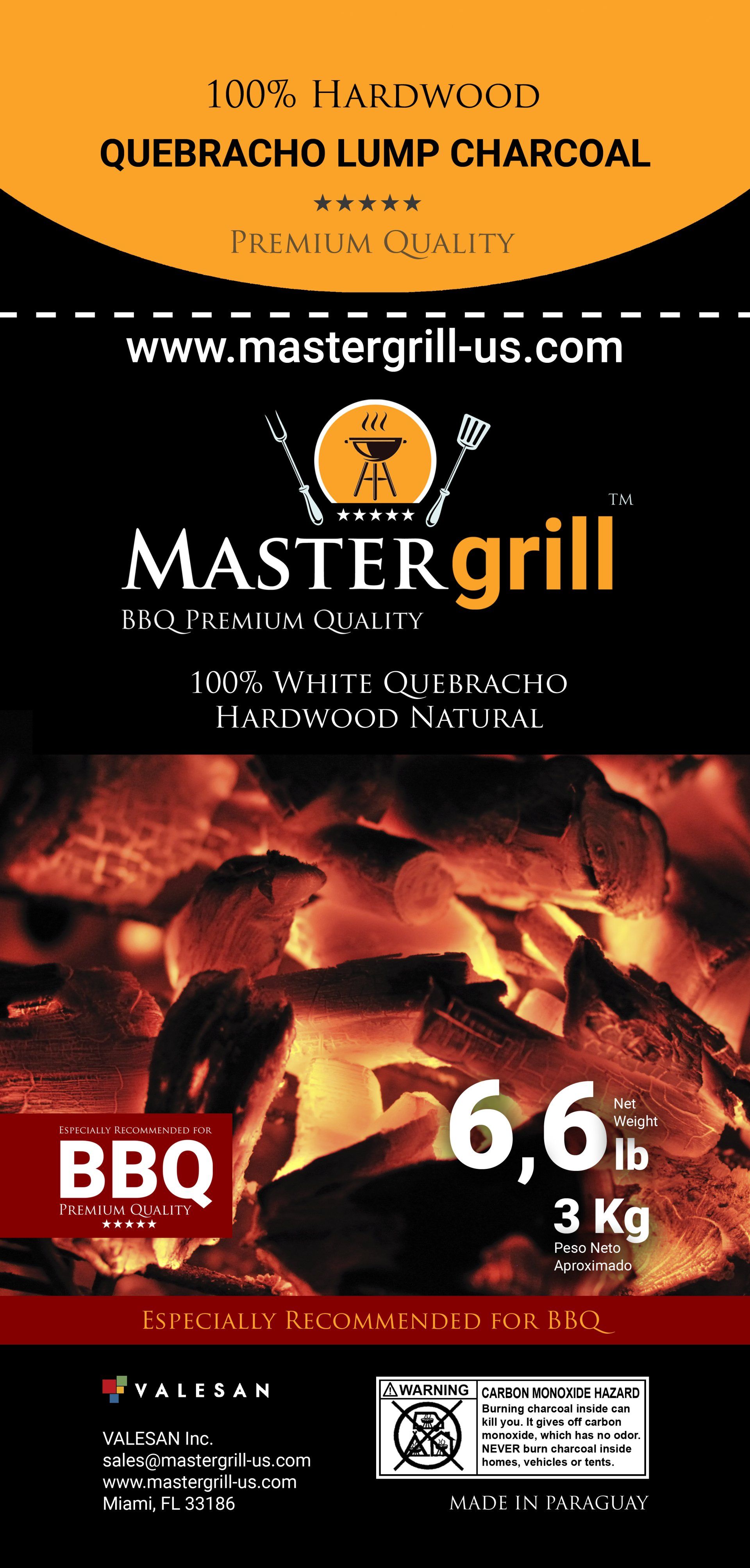 MasterGrill y sus tres variantes: "Quebracho Hardwoods Charcoal", "Charcoal Briquettes" y "Hardwoods Lump Charcoal", se ofrecen además en 3 tamaños de bolsa para que puedas elegir la opción que más se ajuste al tamaño de tu barcacoa.